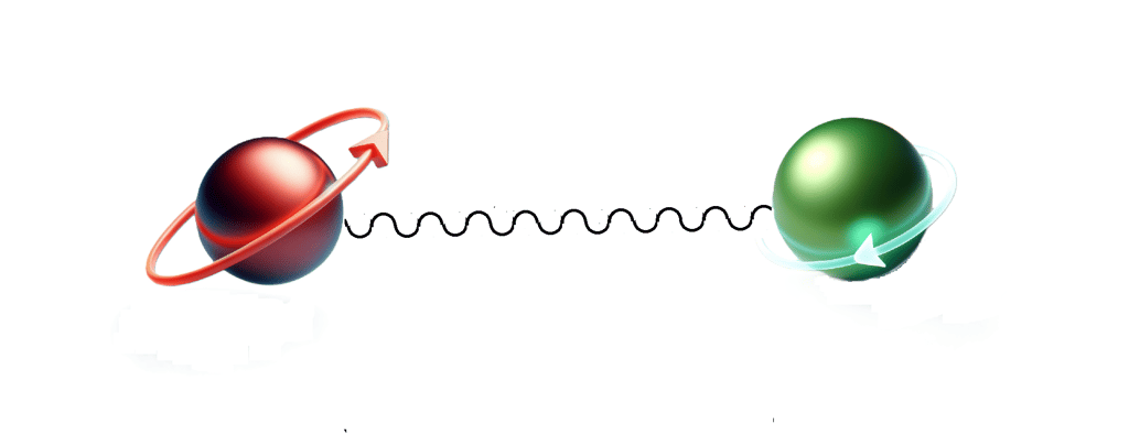 OK, where can we go with the idea of “simple but alien”? One thing we can look at is what is popularly called “spooky action at a distance”. Quantum mechanics suggests, despite Einstein’s objections, that some information must be passed faster than the speed of light between certain “correlated” particles if they are measured in certain ways. Spin ½ particles correlated so that the total spin of the system is 0 is a common presentation of the “spooky action at a distance”.
