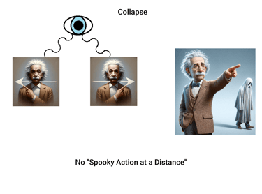 We will look at why there may not be “spooky action at a distance” in such systems. Two treatments follow: a compact one, somewhat in the manner of a technical article abstract, and an expansive one for those with some math and physics background.