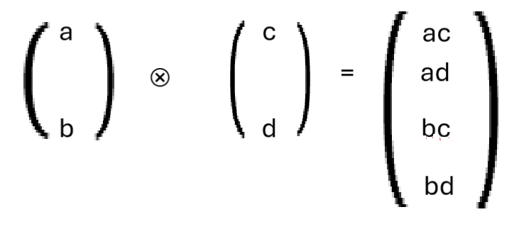 The symbol “⮾” is the symbol for tensor product. Each element of the first vector in the product is replaced by the second vector multiplied by that element, producing a 4 x 1 vector in the case of two spin states. That is,