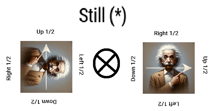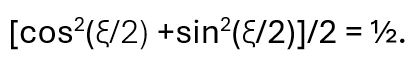 The situation with two spin ½ particles in the joint state (*) is very similar. Because the two particles cannot have the same spin in the same direction, the probability that two overlaid “sticks” representing the particles will have the same spin for an angle ξ between the endpoints will be