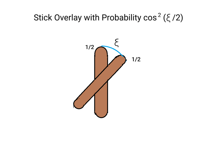be the probability that one end of the new stick be labeled ½ when ξ is the angle between the segment of the new stick from that end to the center and the segment of the original stick from the ½ label to the center.